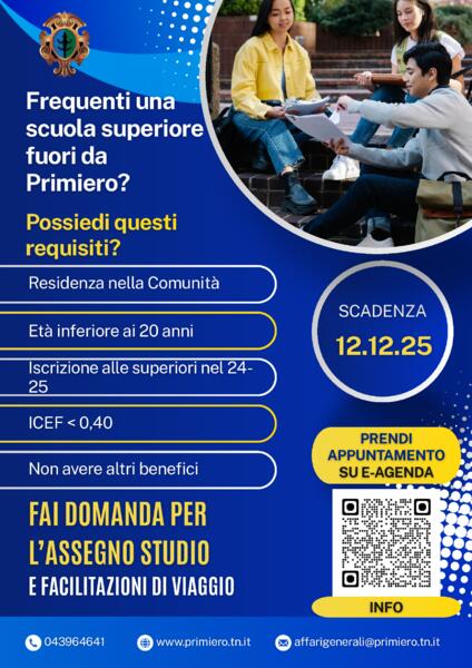 Bando di concessione Assegni studio e viaggio 25/26: domande dal 10/11 al 12/12