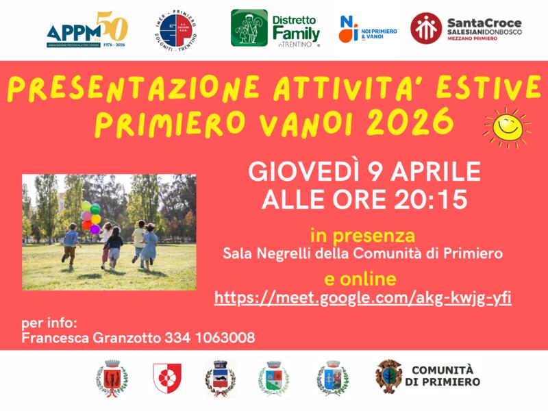 l'estate 2026, Giovedì 9 aprile 2026 alle ore 20:15 presso la sala