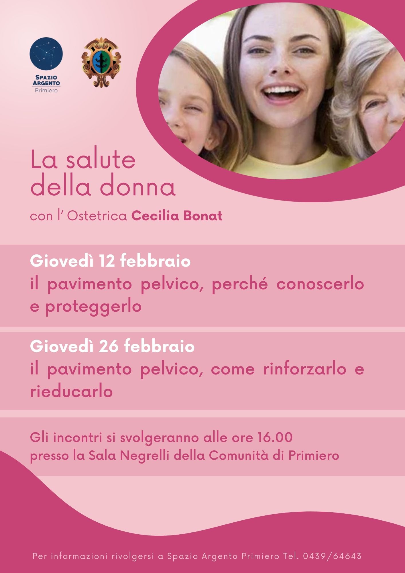 - Nelle giornate del 12 e 26 febbraio alle ore 16 presso la Sala Negrelli, parleremo di salute della donna con l'ostetrica Cecilia Bonat. Nella locandina tutte le informazioni